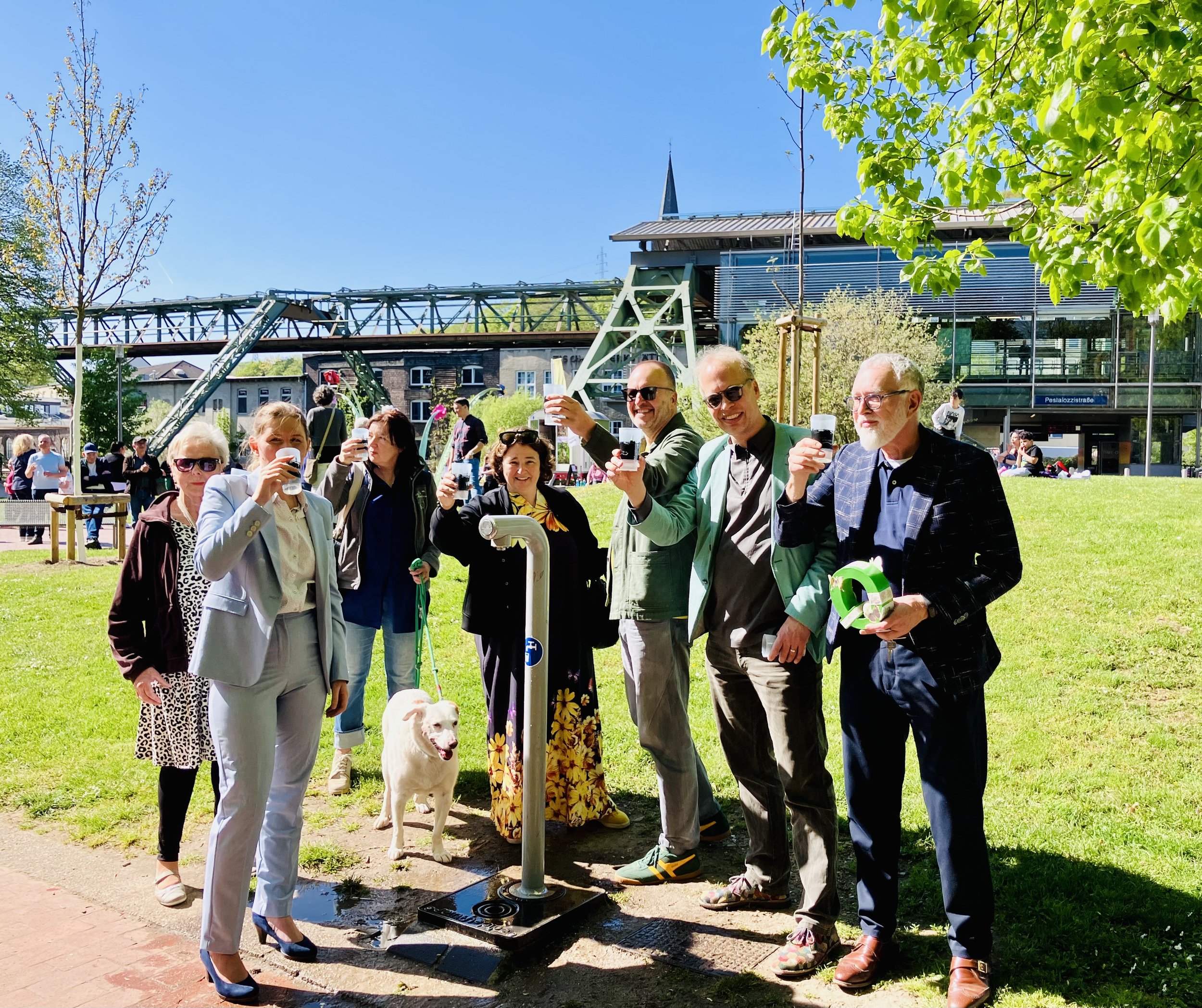 So entsteht Jahr für Jahr ein wachsendes Netzwerk aus Vereinen, Initiativen, Nachbarschaften und engagierten Bürgerinnen und Bürgern. Genau darin liegt die besondere Stärke der QUGA: Sie macht sichtbar, dass Stadtentwicklung nicht erst mit großen Baustellen beginnt, sondern dort, wo Menschen ihre Quartiere kennen, Verantwortung übernehmen und gemeinsam gestalten. In diesem Jahr ist der Verein Aufbruch am Arrenberg Pate der Quartiersgartenschau. Die Verantwortlichen nutzten die Gelegenheit und erfrischten sich zur QUGA am Trinkwasserbrunnen neben dem Spielplatz ein.